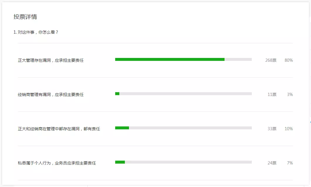 顯然,絕大多數(shù)投票者認為,南通正大對此事負有主要責(zé)任。