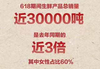來源: 冷凍食品網(wǎng) 發(fā)布者:編輯今年618期間(6月1日0:00-6月18日24:00),京東生鮮共銷售生鮮產(chǎn)品約30000噸,是去年同期的近3倍,其中女性占比60%。