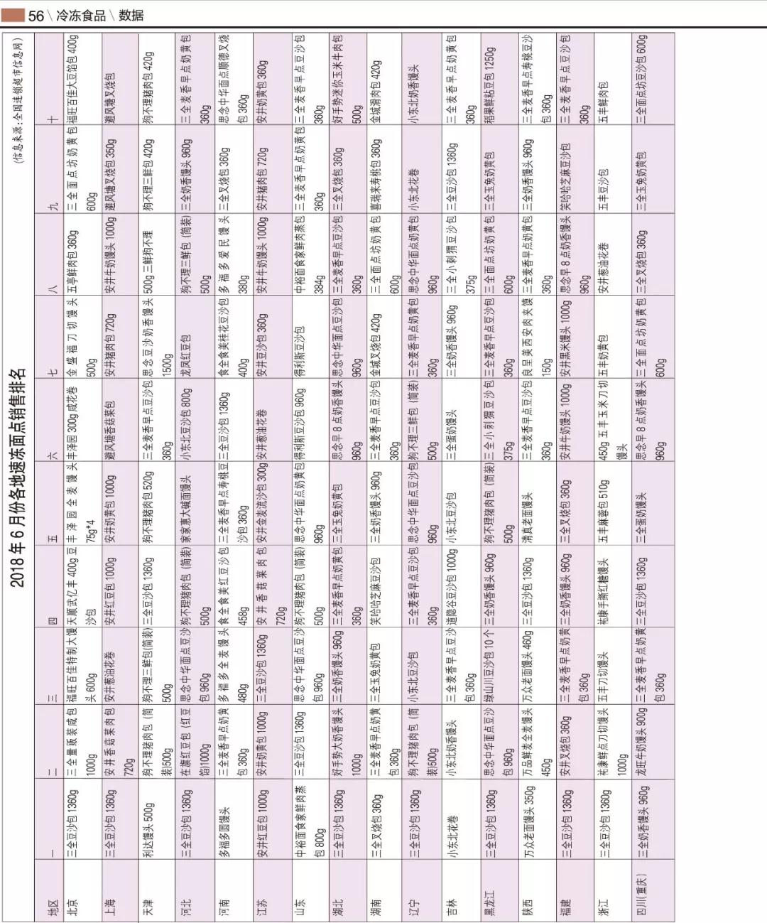 來源: 冷凍食品網(wǎng) 發(fā)布者:編輯▼2018年6月份各地速凍面點銷售排名