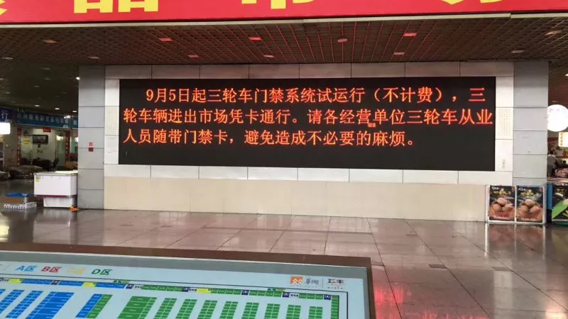 小冰了解發(fā)現(xiàn),原由是市場發(fā)布的一則通知:9月5日起,三輪車門禁系統(tǒng)試運(yùn)行(不計(jì)費(fèi)),三輪車進(jìn)出市場憑卡通行。