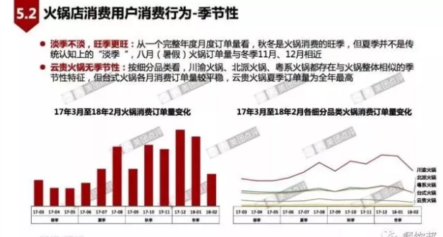 雖然火鍋的旺季是秋冬,但從數(shù)據(jù)來看,夏季并不是傳統(tǒng)認知的“淡季”。尤其8月(暑假)火鍋訂單量與冬季11月、12月相近。按照細分品類來看,臺式火鍋各月消費訂單量較平穩(wěn),云貴火鍋夏季訂單量為全年最高。
