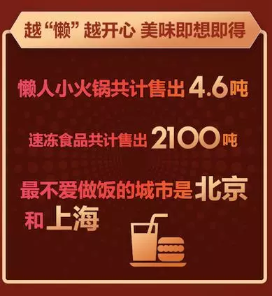數(shù)據(jù)也證明了“懶人經(jīng)濟”的真實存在。11.11期間,京東生鮮懶人小火鍋(自熱火鍋)共計賣出4.6噸;速凍食品共計售出2100噸;方便菜銷量是去年同期的1.8倍;火鍋相關(guān)食材售出757噸,夠冰島全民一起吃五次火鍋,其中北京地區(qū)消費者買得最多;簡單加工就能食用的面點銷量是去年同期的2倍;速凍水餃、餛飩的銷量也接近去年同期的2倍。