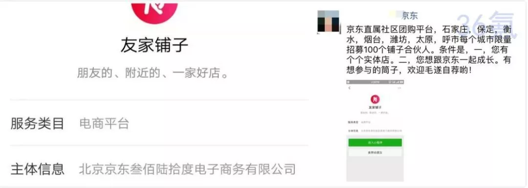 友家鋪子的主體信息為“北京京東叁佰陸拾度電子商務有限公司”,也是“京東購物”小程序的開發(fā)主體,系京東集團子公司,由劉強東擔任法人。