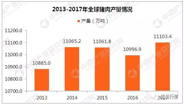 來(lái)源: 冷凍食品網(wǎng) 發(fā)布者:編輯根據(jù)中商產(chǎn)業(yè)研究院發(fā)布的《2018-2023年中國(guó)豬肉市場(chǎng)前景及投資機(jī)會(huì)研究報(bào)告》顯示,2017年全球豬肉產(chǎn)量為11103.4萬(wàn)噸,較2016年的10996.9萬(wàn)噸增長(zhǎng)0.97%??v觀近五年全球豬肉產(chǎn)量情況,除2016年之外,其余年份均呈正增長(zhǎng)趨勢(shì)。