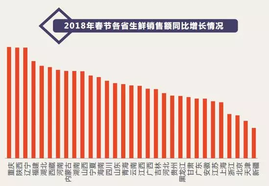透過(guò)京東平臺(tái),來(lái)自全球的進(jìn)口海鮮和進(jìn)口水果走上了國(guó)民的餐桌,彌補(bǔ)了地域的飲食不均衡,與2017年春節(jié)期間相比,2018年春節(jié)生鮮消費(fèi)同比增長(zhǎng)最快的省份包括重慶、陜西、遼寧、福建、湖北,其銷(xiāo)售額同比增長(zhǎng)均超過(guò)300%。