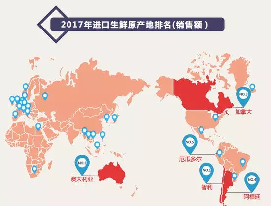 從生鮮產(chǎn)地來(lái)看,“尋鮮”走向國(guó)際,生鮮消費(fèi)更加具有國(guó)際范兒。隨著人民生活水平提高,對(duì)于進(jìn)口生鮮的消費(fèi)表現(xiàn)得更加明顯。