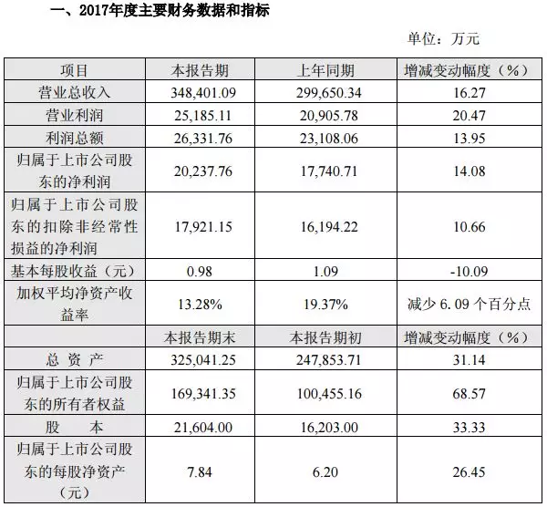 3月13日,惠發(fā)股份發(fā)布2017年年度報(bào)告,報(bào)告期內(nèi),公司實(shí)現(xiàn)營業(yè)收入9.39億元,較去年同期增長5.47%;實(shí)現(xiàn)歸屬于母公司股東的凈利潤6038.11萬元,較去年同期增長43.36%。公司擬以2017年末的總股本1.2億股為基數(shù),向全體股東每10股派發(fā)現(xiàn)金股利2.5元(含稅),同時(shí)以資本公積每10股轉(zhuǎn)增4股。