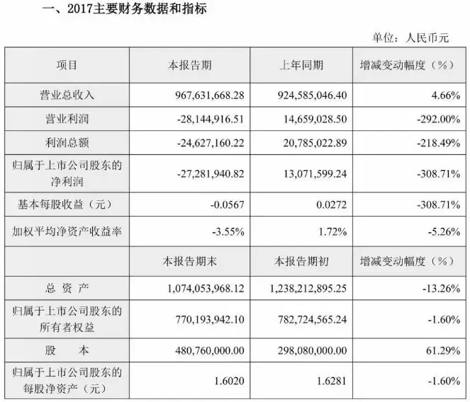 據(jù)快報(bào)中稱,凈利潤大幅下降的主要原因是2017年度終止限制性股票激勵(lì)計(jì)劃產(chǎn)生管理費(fèi)用2090.70萬元,以及計(jì)提參股公司上海貓城電子商務(wù)股份有限公司長期股權(quán)投資減值準(zhǔn)備1,229.37萬元。