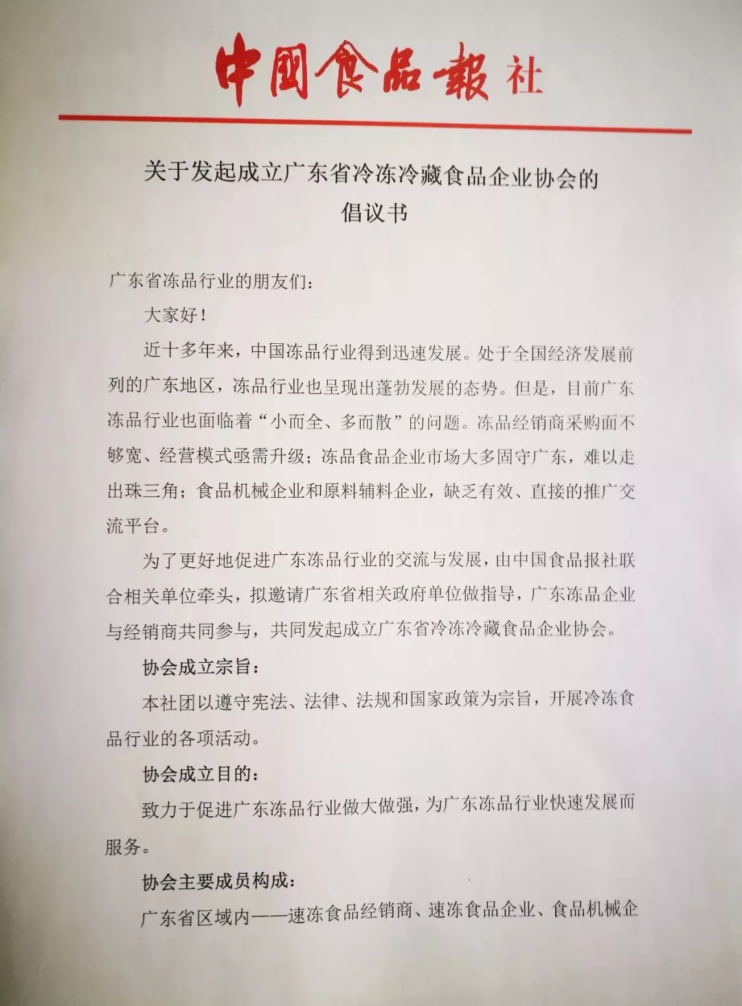 由《中國(guó)食品報(bào)》《現(xiàn)代食品》雜志社牽頭,擬邀請(qǐng)廣東省相關(guān)政府單位做指導(dǎo),廣東凍品企業(yè)與經(jīng)銷(xiāo)商共同參與,共同發(fā)起成立廣東省冷凍冷藏食品企業(yè)協(xié)會(huì)。