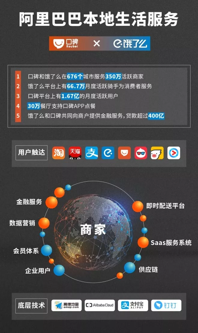 新成立的阿里本地生活服務(wù)公司是國內(nèi)領(lǐng)先的本地生活服務(wù)平臺(tái),口碑和餓了么一起在676個(gè)城市服務(wù)商家達(dá)到350萬。在餓了么的平臺(tái)上,有66.7萬的月度活躍騎手為消費(fèi)者服務(wù),平均每個(gè)用戶每年下單近20次;在口碑的平臺(tái)上,1.67億月度活躍用戶充分享受著完善的到店服務(wù)。
