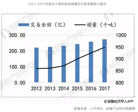 2012-2017年速凍火鍋料制品銷(xiāo)量及交易金額統(tǒng)計(jì)情況