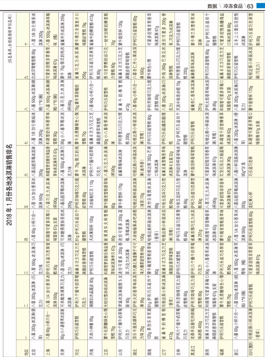 來源: 冷凍食品網(wǎng) 發(fā)布者:編輯▼2018年1月份各地冰淇淋銷售排名